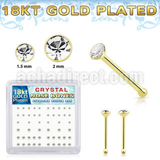 18k Gold Plated Silver Nose Bones Clear Crystal, Display Box