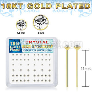 2. 18yz2xc 18k gold plated silver bend it nose stud w 2mm clear cz