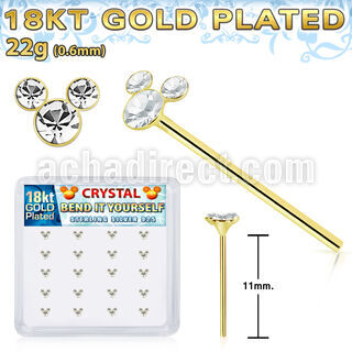 18k Gold Plated Silver "Bend it Yourself" Nose Studs with Round Crystals Forming a Mouse Face