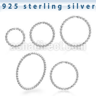 925 Sterling Silver Seamless Nose Ring 20g Twisted Wire
