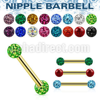 Gold PVD Plated Steel Barbell with Ferido Glued Balls