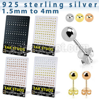 18k Gold Plated, Rose Gold Plated, Plain Silver Ear Studs in 60 Pairs