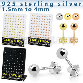 18k Gold Plated, Rose Gold Plated, Plain Silver Ear Studs in 36 Pairs
