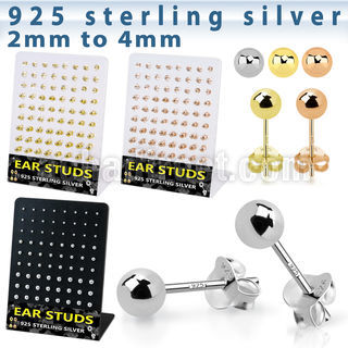 18k Gold Plated, Rose Gold Plated, Plain Silver Ear Studs in 36 Pairs
