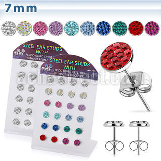 Steel Ear Studs with Ferido Glued Crystals, 12 Pairs