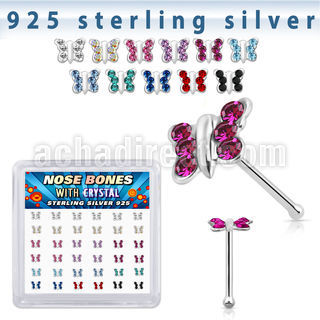 925 Sterling Silver Nose Bones Butterfly Shape Color Crystal
