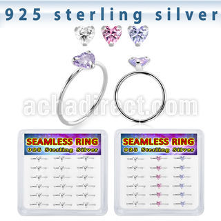 Display Box Silver Seamless Nose Ring Heart Shape CZ Stone