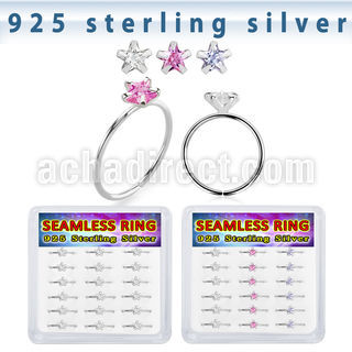 Display Box Silver Seamless Nose Ring Star Shape CZ Stone