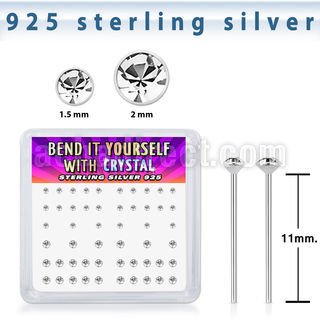 Silver "Bend it yourself" Nose Studs - Crystal, Display Box