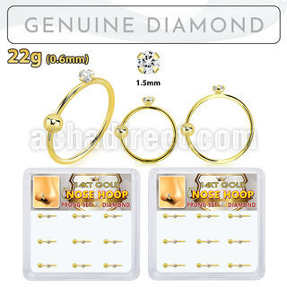 14K Gold Nose Hoops with 1.5mm Prong Set Real Diamonds in a Ball Closure Ring Design, in Display Box