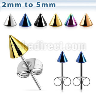 One Pair Surgical Steel Ear Studs with 2mm to 5mm High Polish and PVD Plated Cone