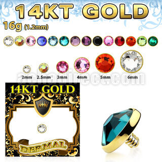 2mm to 6mm 14k Gold Dermal Anchor Top Part with Bezel Set Crystal