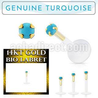 Clear Bioflex Labret with 14k Gold Threadless Push Pin Top