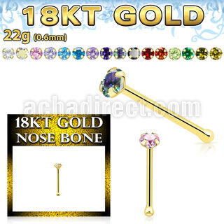 2. ggnbzm1 18k gold nose bone 22g prong set color cz