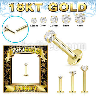 1. glbz solid 14k gold labret w thread less push in top w cz