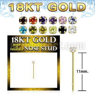 18k Gold "Bend it Yourself" Nose Stud with Round CZ Stone