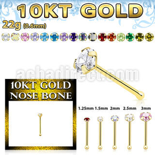 10k Gold Nose Bone with 1.25mm to 3mm Round Prong Set CZ Stone