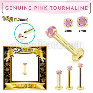 9. gbige3 bioflex labret with 14kt gold w prong pink tourmaline