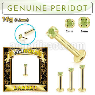 3. gbige4 bioflex labret with push in 14kt gold w prong peridot