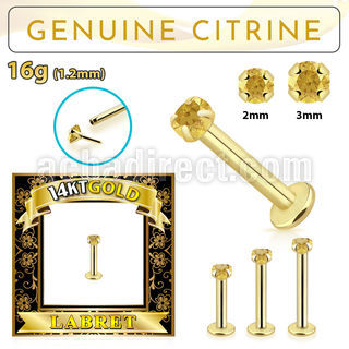 13. gbige6 bioflex labret with push in 14kt gold w prong citrine