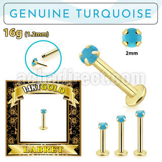 14k Gold Push Pin Labret with Prong-set Turquoise Stone