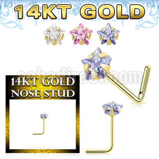 14k Gold Nose Stud with Prong-set Star Shape CZ Stone
