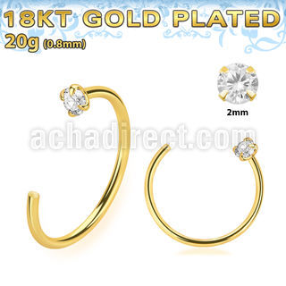 18k Gold Plated Silver Nose Hoop with CZ Stone
