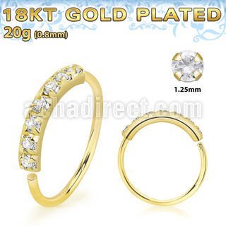 18k Gold Plated Silver Seamless Nose Ring with CZ Stones