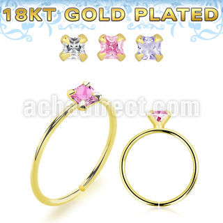 18k Gold Plated Silver Seamless Nose Ring Square CZ Stone