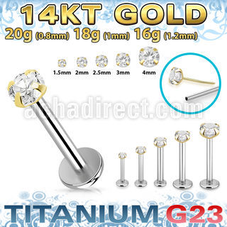 7. glbzxi 14k gold labret 1mm 18g prong set cz internal