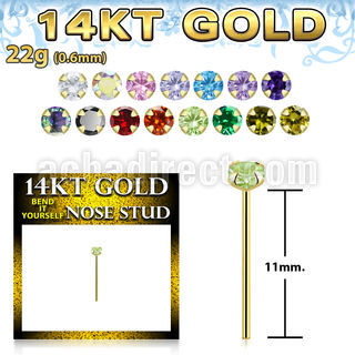 14k Gold "Bend it yourself" Nose Stud with Color CZ Stone