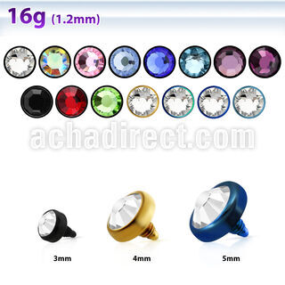 3mm to 5mm PVD Plated 316L Surgical Steel Dermal Anchor Top Part with Bezel Set Crystal