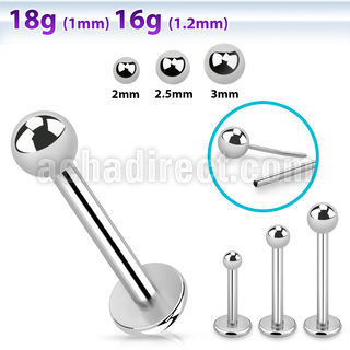 316L Surgical Steel Threadless Push Pin Labret with 4mm Base Plate and 2mm to 3mm Ball