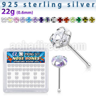 7. nbczbxc box of silver nose bones with 2mm round prong cz
