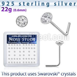 925 Sterling Silver Nose Studs with Round SwarovskiⓇ Crystal Tops