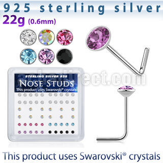 925 Sterling Silver Nose Studs with SwarovskiⓇ Color Crystal Tops