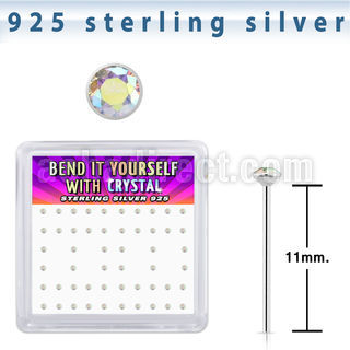 Silver "Bend it Yourself" Nose Studs Round Clear Display Box