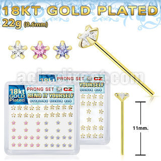 18k Gold Plated Silver "Bend it yourself" Nose Studs with Star Design CZ Stone in Display Box
