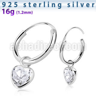 Silver Helix Hoop Earring with Dangling Heart CZ Stone