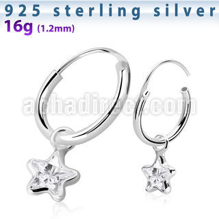 Silver Helix Hoop Earring with Dangling Star Shape CZ Stone