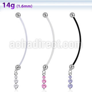 Maternity Pregnancy Bioflex Belly Ring with a Dangling Triple CZ Chains