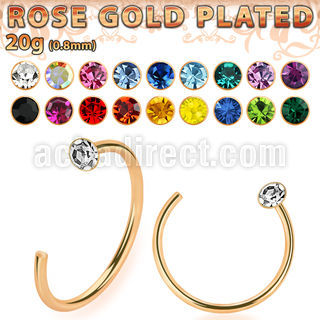Rose Gold Plated Silver Nose Hoop with Crystal Top