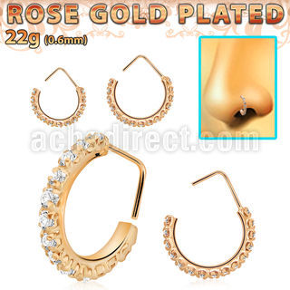 Rose Gold Plated Silver Nose Stud with Clear Crystals on Top