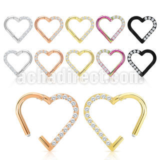 PVD Plated Steel Hinged Segment Ring, CNC Set CZ Heart Shape