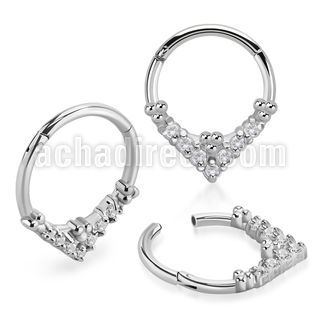 Steel Hinged Segment Ring with CZ & Chevron Design