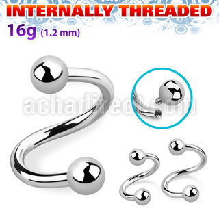 Surgical Steel Internally Threaded Spiral with 3mm Plain Balls