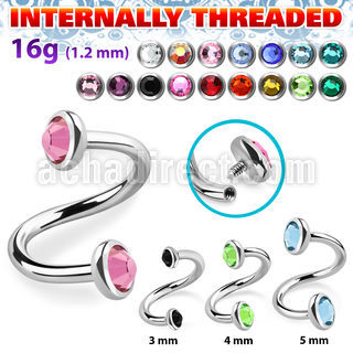 Surgical Steel Internally Threaded Spiral with 3mm to 5mm Flat Back Crystals
