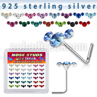 8. nsp19cx box of silver nose studs w 2 5mm clear prong crystal
