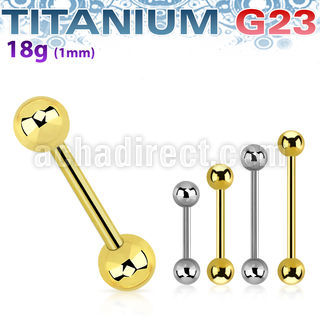 High Polished Titanium Barbell, 1mm (18g), Two 3mm Balls