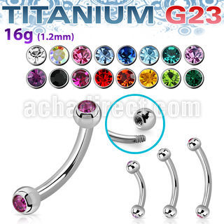 11. ubne2c titanium g23 eyebrow banana with 3mm bezel jewel balls